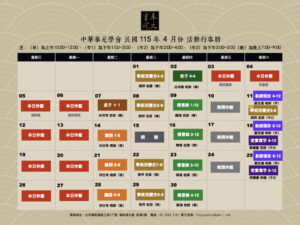 <blockquote class="wp-embedded-content" data-secret="0KdYs8ffqM"><a href="https://fongyuan.org/cal-202604/">2026 年 4 月行事曆</a></blockquote><iframe sandbox="allow-scripts" security="restricted" src="https://fongyuan.org/cal-202604/embed/#?secret=0KdYs8ffqM" width="600" height="400" title="2026 年 4 月行事曆 — 奉元書院" data-secret="0KdYs8ffqM" frameborder="0" marginwidth="0" marginheight="0" scrolling="no" class="wp-embedded-content"></iframe><script> /*! This file is auto-generated */ !function(d,l){"use strict";l.querySelector&&d.addEventListener&&"undefined"!=typeof URL&&(d.wp=d.wp||{},d.wp.receiveEmbedMessage||(d.wp.receiveEmbedMessage=function(e){var t=e.data;if((t||t.secret||t.message||t.value)&&!/[^a-zA-Z0-9]/.test(t.secret)){for(var s,r,n,a=l.querySelectorAll('iframe[data-secret="'+t.secret+'"]'),o=l.querySelectorAll('blockquote[data-secret="'+t.secret+'"]'),c=new RegExp("^https?:$","i"),i=0;i<o.length;i++)o[i].style.display="none";for(i=0;i<a.length;i++)s=a[i],e.source===s.contentWindow&&(s.removeAttribute("style"),"height"===t.message?(1e3<(r=parseInt(t.value,10))?r=1e3:~~r<200&&(r=200),s.height=r):"link"===t.message&&(r=new URL(s.getAttribute("src")),n=new URL(t.value),c.test(n.protocol))&&n.host===r.host&&l.activeElement===s&&(d.top.location.href=t.value))}},d.addEventListener("message",d.wp.receiveEmbedMessage,!1),l.addEventListener("DOMContentLoaded",function(){for(var e,t,s=l.querySelectorAll("iframe.wp-embedded-content"),r=0;r<s.length;r++)(t=(e=s[r]).getAttribute("data-secret"))||(t=Math.random().toString(36).substring(2,12),e.src+="#?secret="+t,e.setAttribute("data-secret",t)),e.contentWindow.postMessage({message:"ready",secret:t},"*")},!1)))}(window,document); //# sourceURL=https://fongyuan.org/wp-includes/js/wp-embed.min.js </script>