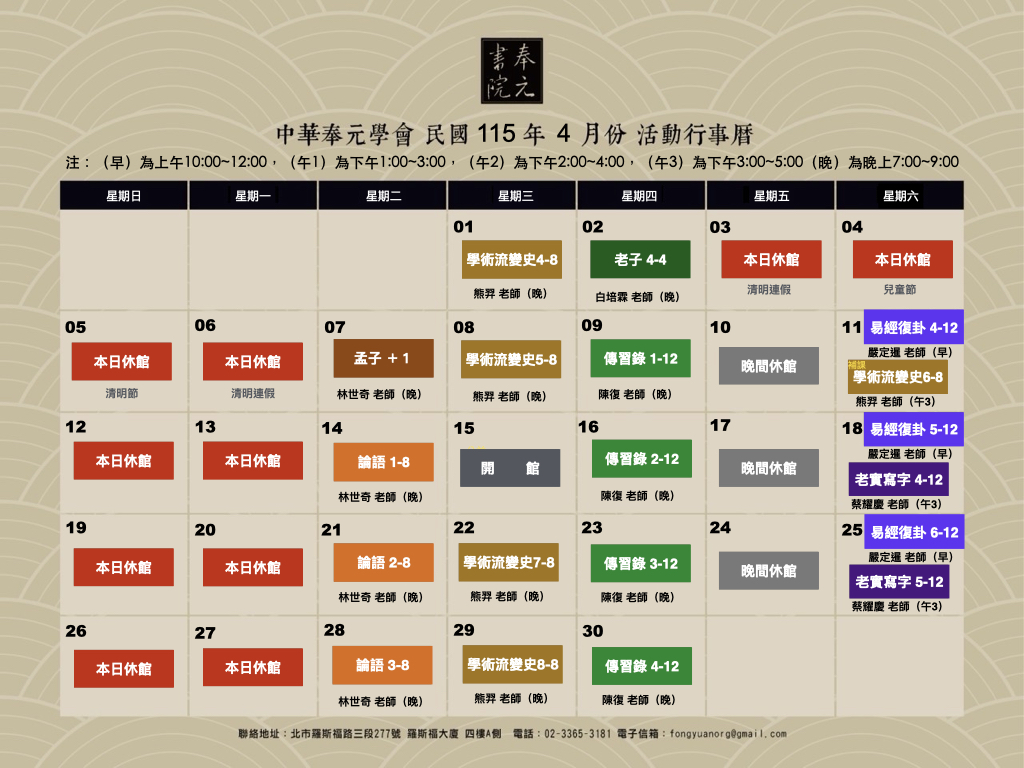 2026 年 4 月行事曆
