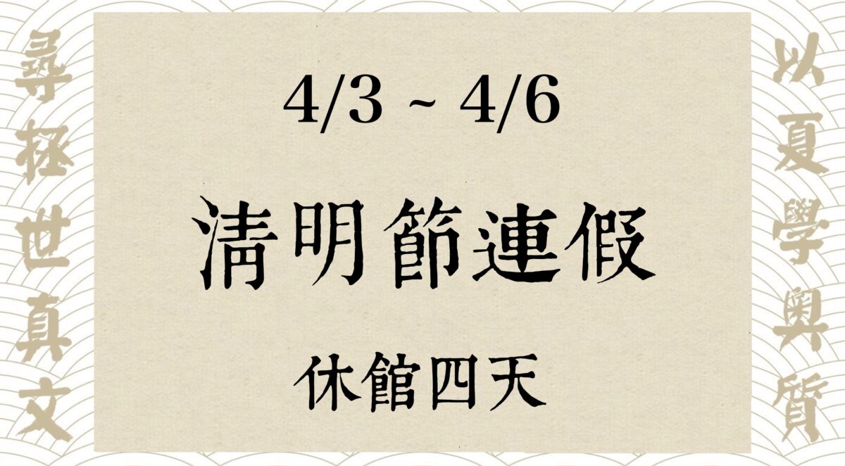 4/3 ~ 4/6 為「清明節連假」,奉元書院將會休館四天,敬請留意! 下週二(4/7)奉元書院將會正常開館。 […]